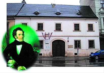 舒伯特在维也纳的诞生故居位于努斯多尔菲大街54号。和贝多芬及海顿故居一样,这也是一个带有宁静天井的二层楼屋,当年共16户人家居住,每户一间厨房和一间大屋。因为舒伯特的父亲是学校的校长,所以占了两户,其中一户用来给学生讲小学课程。