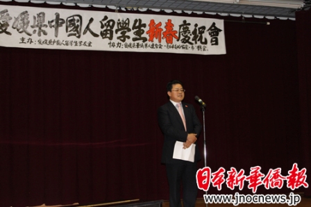 在爱媛大学和松山大学的大学学习的中国留学生和他们的家属、爱媛县华侨华人联合会部分会员以及爱媛县日中友好协会、松山市鹊会的日本友人共百余人参加了庆祝会。