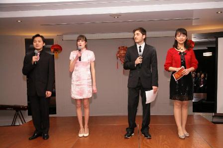 使馆教育处王鲁新参赞首先给到场的各位嘉宾和所有观众拜年并送出虎年的美好祝愿,并回顾了中国在过去一年金融危机时期经济持续发展的良好势头和在国际舞台上的重要地位,同时展望了祖国更美好的2010年,即兴用英语做了发言,在热烈掌声后开始了文艺演出。