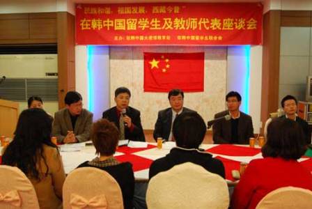 座谈会上学生和教师代表踊跃发言,畅谈自己的想法。韩国孔子学院的王春雨老师向在座的留学们介绍了西藏的历史概况,让同学们对西藏的过去和现状有了更加清晰的认识。来自韩国庆熙大学国语国文专业的研究生、藏族女学生达哇措说,第十一世班禅额尔德尼?确吉杰布被增补为中国全国政协委员,成为有史以来最年轻的全国政协委员,这让她感到非常自豪。达哇措说,如果没有祖国的少数民族政策,那么她到韩国留学是不可能实现的。另外,她还对中国驻韩国使馆教育处对她的帮助表示感谢。苗族学生杨李现在在首尔大学读研究生,她说,我十分感激国家的少数民族政策,与汉族同学在一起学习时,我没有因为是少数民族而感到与其他人有什么不同,祖国是56个民族的大家庭,无论是苗族、藏族还是汉族都是大家庭中平等的一员,都是祖国的主人。(莽九晨)