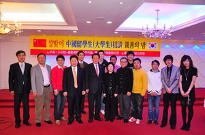 中新网3月10日电 据外交部网站消息,2010年3月5日晚,虽然外面细雨绵绵,但韩国光州市希丁克酒店大宴会厅内却是一片欢歌笑语、喜气盈门。由韩中文化协会和驻光州总领馆共同举办的“迎新春——中国留学生之夜”招待会在这里举行。韩中文化协会总裁李荣一、光州支会会长宋东石及协会多位顾问和理事、驻光州总领事阎凤兰和来自全南大学、朝鲜大学、湖南大学、光州大学和木浦大学的中国留学生代表等100余人出席。