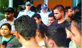 在学生们心情慌乱地填写转校表格时,警方和保安在现场严阵以待。这些表格由清盘人派发,AUSTECH学院的管理层没有到场回答学生们的疑问。