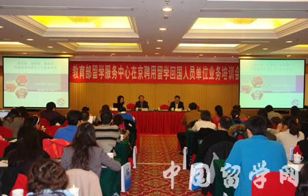 中新网4月6日电 据教育部留学服务中心网站消息,教育部留学服务中心日前在北京召开了“在京聘用留学回国人员单位业务培训会”,来自在京企、事业单位的160余位代表出席了会议。巩万副主任到会做了题为“新形势、新要求,新举措,构建留学回国全方位服务体系”的讲话,中心回国处、投资处、网络中心、学历学位认证中心、档案中心的负责人向与会代表分别介绍了认证、档案、留学人员与用人单位网上信息双向选择平台、高层次海外人才服务等业务内容,并针对在京聘用留学人员单位办理相关业务的要求、办理程序和流程进行了讲解和说明。