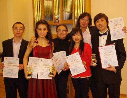 在这次音乐大赛中中国选手成绩喜人,前来参赛的八位选手均获得证书和奖杯,他们有的是在圣彼得堡留学的学生,有的是国内大学的学生。分别参加了钢琴独奏组、管弦乐器组、独唱组、合唱指挥组的比赛并都取得优异成绩。独唱组高翔(赫尔岑师范大学的留学生)获得一等奖;合唱指挥组陈西泽(赫尔岑师范大学的留学生)获得二等奖,一等奖空缺;钢琴独奏组贾超(赫尔岑师范大学的留学生)获得二等奖、张鹏(沈阳音乐学院在校生)获得二等奖、张晶莹(赫尔岑师范大学的留学生)获得优秀奖、齐丽娜(赫尔岑师范大学的留学生)获得优秀奖、刘博(赫尔岑师范大学的留学生)获得优秀奖;管弦乐器组米磊(赫尔岑师范大学的留学生)获得优秀奖。赫尔岑师范大学的高翔还获得了由美国纽约长岛音乐学院特别颁发的创意亮相奖。(佳佳)