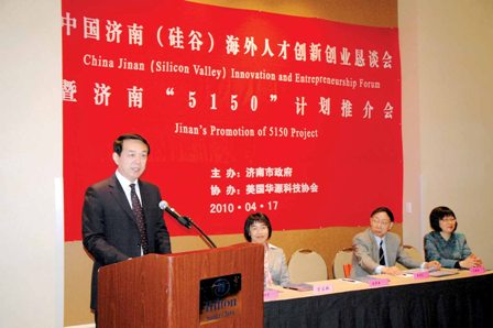 中新网4月19日电 据美国《星岛日报》报道,济南市赴美加友好访问团17日在美国圣他克拉举行一场“济南硅谷海外人才创新创业恳谈会”。代表团介绍了济南的现况与发展优势,欢迎优秀人才回济南发展创业。代表团一行12人,将在硅谷地区停留2日,恳谈会约有百人参加。由济南市政府主办,美国华源科技协会协办。