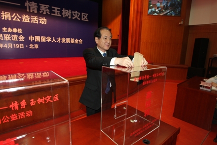 4月19日下午17:00,欧美同学会•中国留学人员联谊会和中国留学人才发展基金会在欧美同学会会所举办了“海归服务中国——情系玉树灾区”赈灾募捐公益活动。