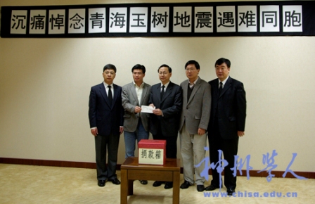 2010年4月21日上午,在韩中国留学生会会长李忠辉等代表全体留学学人向地震灾区捐款,驻韩中国大使馆张鑫森大使接受了留学生的自愿爱心捐款。