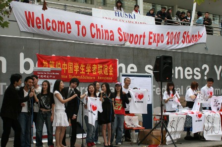 中新网5月7日电 据中国驻澳大利亚墨尔本总领馆消息,5月4日,澳大利亚拉筹伯大学中国学生学者联谊会在该校中心区举行了迎世博大型活动。活动选择在中午学生们课间休息的黄金时间举行,吸引了数百名师生驻足观看。该校国际学生部及中国研究中心代表出席,驻墨尔本总领馆教育领事出席。