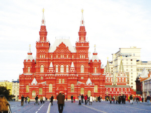 有人说,想了解俄罗斯,必须从红场开始。红场位于莫斯科的中心,从北到南长659米,从东到西宽130米,是一块略微高起、有一点拱形圆弧的台地。所以,无论你从什么角度眺望,克里姆林宫、瓦西里升天大教堂、“古姆”市场、历史博物馆,在明朗的天色中都表现出或者雄伟或者绮丽的剪影。