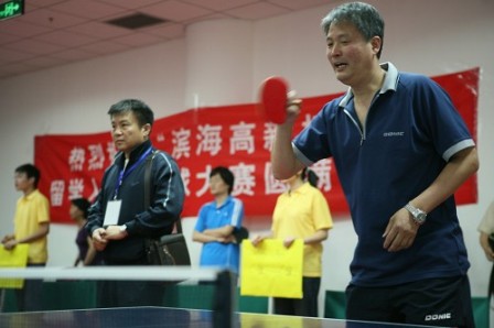 中新网5月18日电 据南开大学消息,初夏时节,万木葱茏,莘莘学子,聚集南开。5月15日,“滨海高新杯”天津市首届留学人员乒乓球比赛在南开大学隆重举行。来自天津市高校、科技、卫生、金融系统的100多名海外高层次留学归国人员参加了此次比赛。