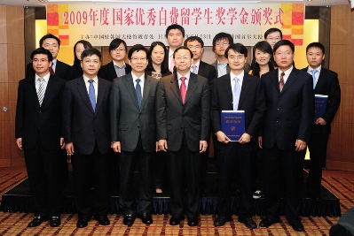 中新网5月24日电 据外交部网站消息,2010年5月23日下午,中国驻韩国大使馆在首尔大使饭店隆重举行“2009年度国家优秀自费留学生奖学金”颁奖仪式。张鑫森大使出席仪式并为获奖者颁发获奖证书和奖学金。来自韩国各个地区的13名获奖者以及部分获奖同学的指导教授、家属代表共计40余人出席了颁奖仪式。颁奖仪式由教育处艾宏歌参赞主持。