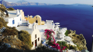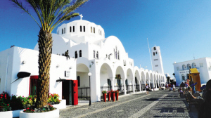 说到圣托里尼岛,眼前自然便浮现出迷人的蓝白二色。