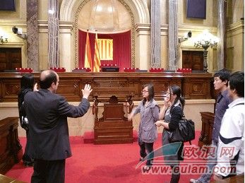 中新网6月1日电 据西班牙欧浪网报道,5月28日早上10时30分,位于巴塞罗那城市公园里的加泰罗尼亚自治区地方议会大楼迎来一批参观者,他们都是在巴塞罗那当地留学的中国留学生代表。这个活动由巴塞罗那中国学生学者联谊会组织,为了方便居住在加泰罗尼亚地区的学生们认识了解及接触当地重要官方机构,该协会于5月28日早上组织部分留学生代表参观加泰罗尼亚议会。