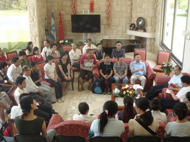 中新网6月11日电 据外交部网站消息,2010年6月4日,驻以色列大使官邸的会议室里坐满了在以留学人员,场内气氛热烈,被邀参加座谈会的40多位博士和博士后争先恐后地畅谈自己的体会。