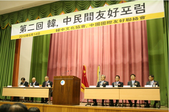 当天论坛中,围绕韩中两国民间交流的和青少年交流的重要性,韩国前国务总理李汉东和李肇星会长分别致辞,接着韩国前外交通商部部长尹永宽和中国国际友好联络会副秘书长宋恩垒进行了主题发言。