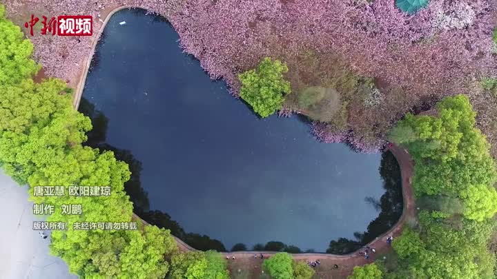 近日,湖南湘潭。湖南科技大学翻修后的樱花园内,成片的粉樱纷纷吐蕊绽放,浪漫了整个校园。该校的樱花连日来进入最佳观赏期,总面积约1万平方米的樱花园位于校园北区中心位置,亭榭相间,旁有明湖依绕,花木掩映,别具韵味。(唐亚慧 欧阳建琼 制作 刘鹏)