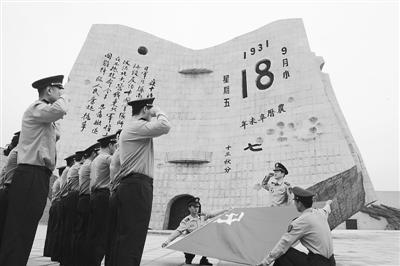 8月11日,辽宁省军区某预备役团官兵在“九一八”历史博物馆“残历碑”前重温入党誓词。本报特约记者 黄长刚摄