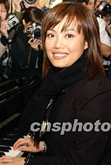 香港著名歌星容祖儿、新秀冠军吴浩康一月十日在香港为新歌《他都不爱我》MTV拍摄。图为容祖儿接受记者采访。钱兴强 摄