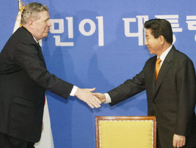 韩国当选总统卢武铉13日在汉城接见了美国总统布什的特使、助理国务卿凯利,双方就朝鲜核问题交换了意见。卢武铉在会谈中强调,韩美两国应通过对话而不是武力来解决朝鲜核问题。凯利在结束对韩国的访问后,还将前往中国、新加坡、印度尼西亚和日本访问。