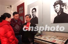 为纪念毛泽东诞辰109周年,收藏家奚景鹏先生《毛泽东著作早期版本收藏展》一月正在北京展出。674册毛泽东著作早期版本,都是建国前出版的毛泽东选集、文集、著作单行本专著著作汇编本、等,图为收藏家奚景鹏先生(右一)正在为参观者讲解他收藏的毛泽东著作各类版本。作者:张勤