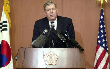 据“中央社”报道,凯利以美国布什总统的特使身份访问汉城,在会见韩国总统当选人卢武铉之后,在汉城外交部举行新闻发布会。