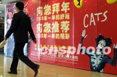 百老汇常年盛演不衰的名剧《猫》将于三月登上上海大剧院舞台,让上海观众一睹它的风采。这也是这部名剧首次登上中国的舞台。图为百老汇名剧《猫》即将登陆上海的宣传广告。作者:汤彦俊