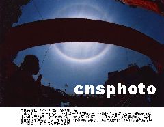 中新网1月14日电 1月6日,吉林省靖宇县上空出现了两轮太阳在天空中交相辉映的奇景,两个太阳相距不是很远,肉眼看上去都十分刺眼,而且一轮太阳的旁边还出现了一道亮丽的彩虹。