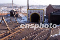黑龙江省方正县宝兴煤矿十一日凌晨发生瓦斯爆炸事故,当时有三十五名工人在井下作业,其中一人生还,三十四人下落不明。事故发生后,黑龙江省和哈尔滨市及方正县的有关领导立即赶赴现场指挥抢救。图为宝兴矿斜井主井的坑口。作者:郭存发