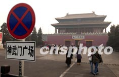 一月十五日,北京故宫神武门广场竖起禁止停车的交通标志牌。为恢复紫禁城周边凝重幽静的历史原貌,故宫博物院决定从当天开始废止神武门外停车场。作者:张炜