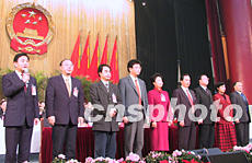 重庆市二届人大一次会议十五日闭幕。闭幕式上,新当选的重庆市市长王鸿举率当选的八位副市长集体亮相。作者:邹辉