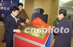 为使来京务工的外地农民工的合法权益得到保障,北京市司法局与北京市建委十六日举行“外地施工人员法律援助工作站”揭牌仪式。此工作站为外地进京施工人员这一特殊群体,提供法律咨询、代书、诉讼外调解等无偿的法律援助。建设部副部长刘志峰(右)、北京市市委副书记强卫(左)为工作站揭牌。作者:任海霞