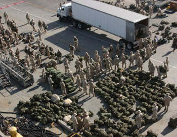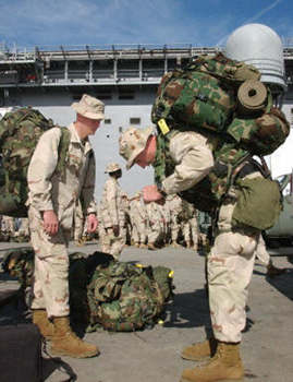 一支美海军陆战队远征部队正准备从加利福尼亚圣地亚哥海军港口,乘坐“好人理查”号两栖攻击舰前往波斯湾。与此同时,还将有六艘两栖舰负责运送其它作战单位一同前往。