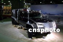 最近,一批用尖端科技装备武装起来的美国军用车辆揭开神秘面纱,亮相底特律北美国际车展。图为第二代智能卡车,这款6轮驱动的军用卡车配备有自动导航和自动驾驶系统、全球卫星定位系统、360度自由旋转摄像机、激光制导轻型导弹等先进的仪器和武器装备,可随时随地、快捷地执行指挥部的命令。Ic/cnsphoto 摄