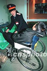 北京站在春运期间,开辟了全国第一家敬老助残候车室,免费帮助老弱病残旅客乘车。