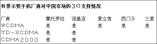 此外,中国市场巨大,潜力更是惊人,目前中国是GSM第一大国,每年净增6000万用户。就像抛开了中国的12亿人口谈世界人口状况一样,凭借除中国以外的手机市场现状来预测未来3G趋势显然是不权威的。决定未来3G命运的主战场可能就是中国。