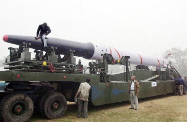 印度将在本月26日的国庆日上展示1999年4月试射成功的“阿格尼”地对地导弹,射程达2500公里,有效负载为1吨,并可携带核弹头。