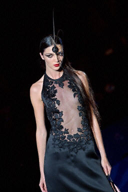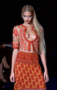 1月20日,时装模特在巴黎展示2003年新款的春夏时装。为声援反艾滋病活动,法国的服装设计大师Jean-Paul Gaultier和前超级名模Ines de la Fressange将在1月22日举办一次慈善晚会,为艾滋病研究和防治募集资金。