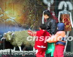 农历羊年将至,北京王府井一商场在橱窗里摆出了一只身着时髦衣装的“羊模特”。作者:杜洋