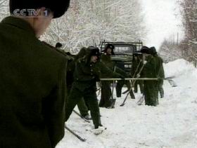 中央电视台记者在雪崩现场看到,5000多方积雪顺山体冲下,造成阿勒泰市区2000多米道路受阻,一百多米围墙被冲倒,10多户住家、约50多人受灾。