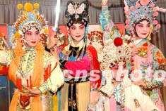 由上海京剧院、渖阳京剧院及贵州京剧院联合制作的“中国京剧武旦群英会”一月二十一日在香港举行记者见面会,为近日在香港的联合演出打造声势。中新社传真 钱兴强 摄