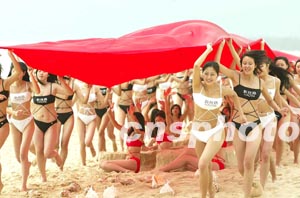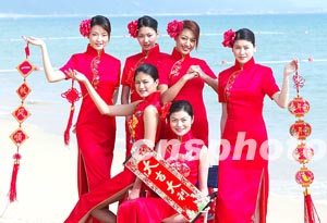 图:二百多名模特到海南三亚向全国人民拜年