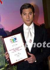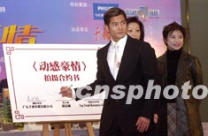 歌星郭富城1月22日在香港出席广东千秋传媒有限公司投资的电视剧“动感豪情”签约仪式,郭富城在该电视剧担任男主角,亦是他主演的首部国产电视剧,该电视剧全剧以香港作为背景,透过内地87个电视台播放,让内地超过数以亿计的观众收看,这将有助内地观众来香港旅游的兴趣。中新社传真 邓庆乐 摄