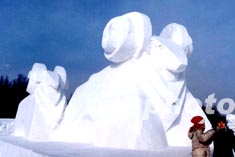 中国北方都市长春的净月潭为新春建立冰雪大世界,洁白的羊年大雪雕倍受迎接春节羊年游客的喜爱。作者:贾国荣