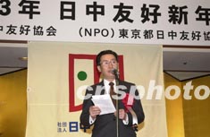 日中友好协会二十二日在东京举行2003年日中友好新年会,中国驻日大使武大伟致词时说,中日友好是大势所趋。作者:陶光雄