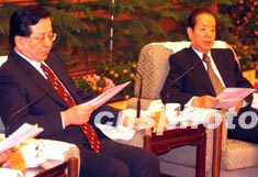 北京各界人士一月二十四日在人民大会堂出席江泽民主席《为促进祖国统一大业的完成而继续奋斗》的重要讲话发表八周年座谈会。作者:贾国荣