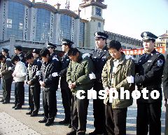 北京铁路公安春运打击票贩子 潘旭临 摄