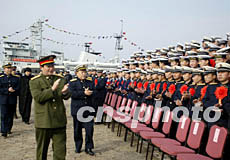 中央军委授予海军哈尔滨舰“海上先锋舰”荣誉称号命名大会二十六日在青岛某军港举行。总政治部、海军及舰队领导看望哈尔滨舰官兵。作者:王松岐