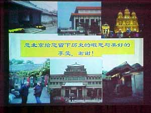 在北大,这些来自宝岛的学子们每天清早都习练太极拳,而这同时也是北大举办中华文化研习营的必修课。同时,他们在北大还聆听北大教授开讲有关中国近代史和中华文化的新的一课。上午的这一课是由历史系教师、刚从美国访学归来的李孝聪教授讲《北京古城的沿革和胡同文化》,该课丰富翔实的内容、生动形象的讲述形式,不但深深吸引了100多名台湾师生,也吸引住记者自始至终听完了3节课。两个半小时里,李教授旁征博引,还以大量自拍自编的精彩图片,深入浅出而又极其鲜活地再现了北京城整个格局演变和胡同建筑的种种风貌。