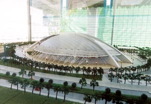 位于路凼塡海区的“澳门蛋(Macau Dome)”大型多功能体育馆,比现正施工的澳凼第三大桥还高,是特区政府成立以来投资最大的单一工程项目。该项工程早前经土地工务运输局公开招标、评审,并经行政长官批示,由新明辉/中国建筑(澳门)联营公司承建,工程造价约为6.4亿元。
