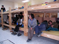 申请进住岸置所的大陆渔工每天食宿费新台币250元,都由渔船主支付。每处岸置所可同时容纳100到300人,内有全新的通铺、寝具,也有睡袋供使用,休闲室内有电视、卡拉OK等。